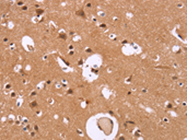 The image is immunohistochemistry of paraffin-embedded Human brain tissue using P04923(HDLBP Antibody) at dilution 1/30. (Original magnification: ×200) |
