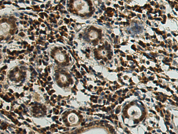 The image is immunohistochemistry of paraffin-embedded Human esophagus cancer tissue using P03483(HEXIM2 Antibody) at dilution 1/190. (Original magnification: ×200) |