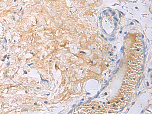 The image is immunohistochemistry of paraffin-embedded Human thyroid cancer using P13571(HIC1 Antibody) at dilution 1/55. (Original magnification: ×200) |