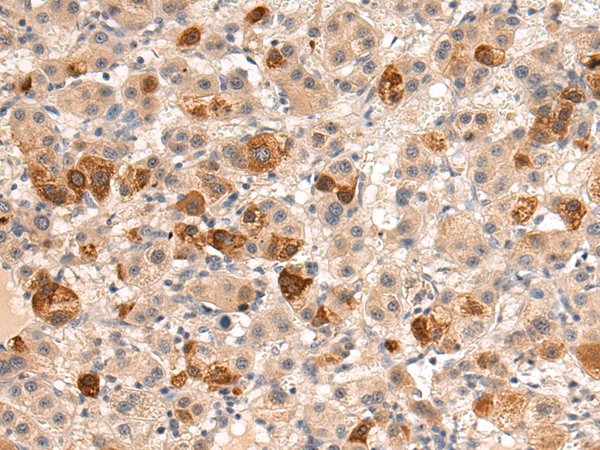 The image is immunohistochemistry of paraffin-embedded Human liver cancer tissue using P04021(HINT3 Antibody) at dilution 1/50. (Original magnification: ×200) |