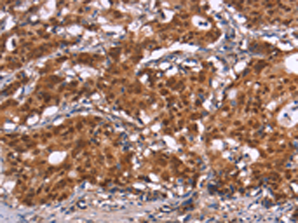 The image is immunohistochemistry of paraffin-embedded Human gastric cancer tissue using P11814(HIPK1 Antibody) at dilution 1/30. (Original magnification: ×200) |