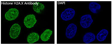 Immunofluorescence analysis of Histone H2A.X in Hela using Histone H2A.X antibody. |