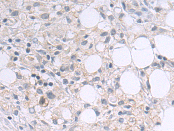 The image is immunohistochemistry of paraffin-embedded Human gastric cancer tissue using P03615(HKDC1 Antibody) at dilution 1/50. (Original magnification: ×200) |