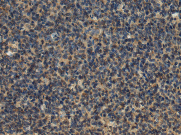 The image is immunohistochemistry of paraffin-embedded Human esophagus cancer tissue using P03504(HLA-DOA Antibody) at dilution 1/140. (Original magnification: ×200) |