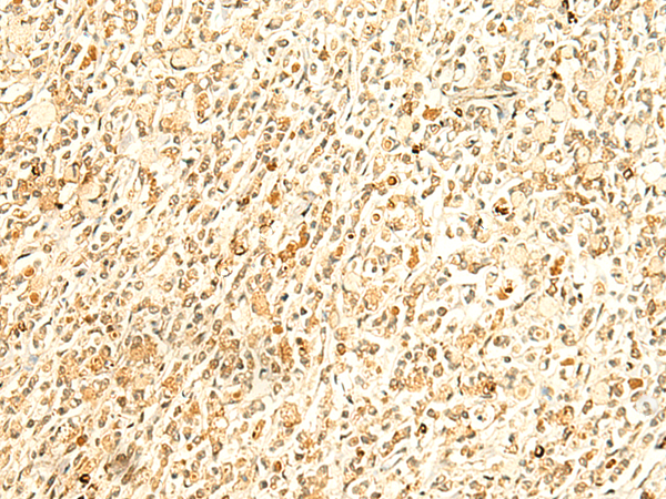 The image is immunohistochemistry of paraffin-embedded Human gastric cancer tissue using P03079(HMBOX1 Antibody) at dilution 1/50. (Original magnification: ×200) |