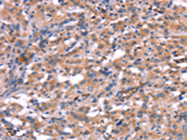 The image is immunohistochemistry of paraffin-embedded Human gasrtic cancer tissue using P04931(HMGCS1 Antibody) at dilution 1/40. (Original magnification: ×200) |