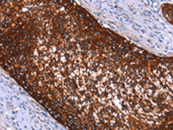 The image is immunohistochemistry of paraffin-embedded Human cervical cancer tissue using P11818(HMGCS2 Antibody) at dilution 1/40. (Original magnification: ×200) |