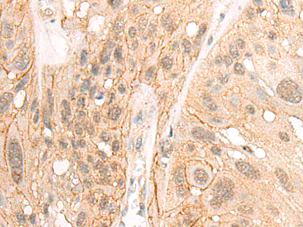 The image is immunohistochemistry of paraffin-embedded Human esophagus cancer tissue using P06327(HOXA10 Antibody) at dilution 1/20. (Original magnification: ×200) |