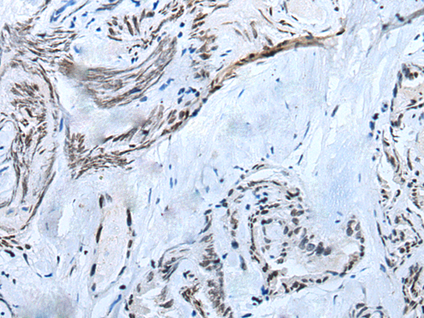 The image is immunohistochemistry of paraffin-embedded Human thyroid cancer tissue using P05872(HOXD12 Antibody) at dilution 1/30. (Original magnification: ×200) |