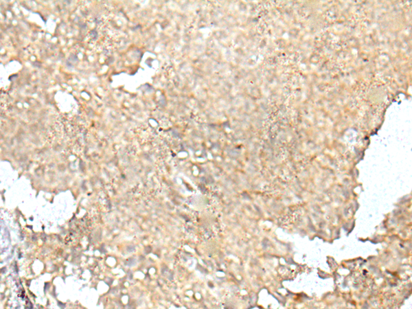 The image is immunohistochemistry of paraffin-embedded Human ovarian cancer tissue using P05799(HOXD12 Antibody) at dilution 1/25. (Original magnification: ×200) |