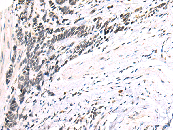 The image is immunohistochemistry of paraffin-embedded Human esophagus cancer tissue using P12744(HOXD3 Antibody) at dilution 1/50. (Original magnification: ×200) |