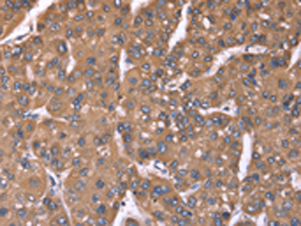 The image is immunohistochemistry of paraffin-embedded Human liver cancer tissue using P11823(HRG Antibody) at dilution 1/50. (Original magnification: ×200) |