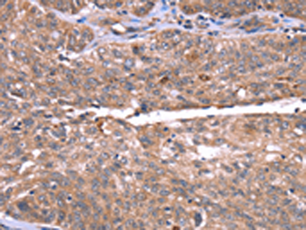The image is immunohistochemistry of paraffin-embedded Human ovarian cancer tissue using P04938(HRG Antibody) at dilution 1/50. (Original magnification: ×200) |