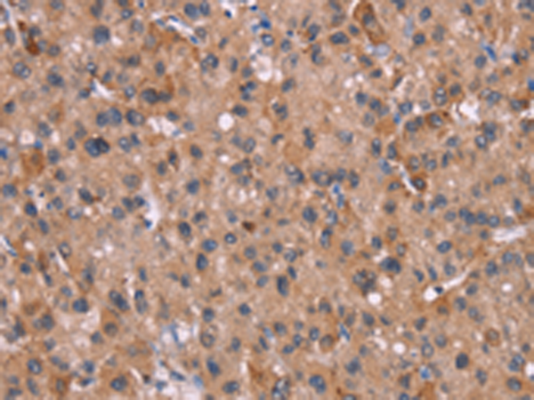 The image is immunohistochemistry of paraffin-embedded Human liver cancer tissue using P11829(HRH3 Antibody) at dilution 1/40. (Original magnification: ×200) |