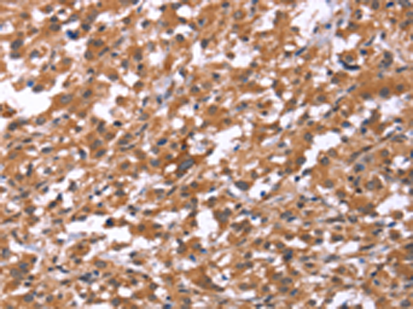 The image is immunohistochemistry of paraffin-embedded Human thyroid cancer tissue using P04948(HSD17B1 Antibody) at dilution 1/40. (Original magnification: ×200) |