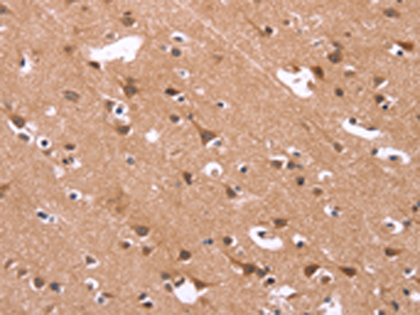 The image is immunohistochemistry of paraffin-embedded Human brain tissue using P04948(HSD17B1 Antibody) at dilution 1/40. (Original magnification: ×200) |