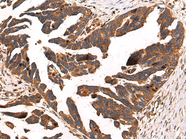 The image is immunohistochemistry of paraffin-embedded Human colorectal cancer tissue using P03535(HSPA13 Antibody) at dilution 1/100. (Original magnification: ×200) |