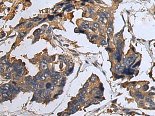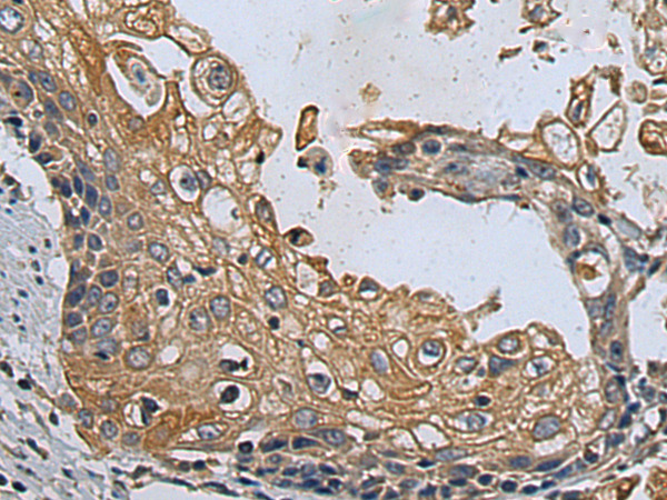 The image is immunohistochemistry of paraffin-embedded Human esophagus cancer tissue using P12545(HTR2A Antibody) at dilution 1/40. (Original magnification: ×200) |