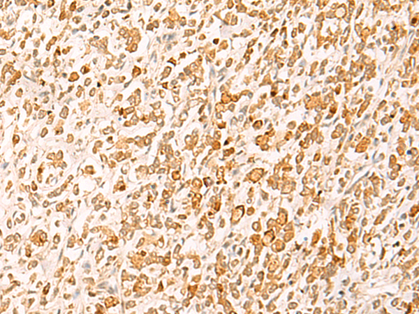 The image is immunohistochemistry of paraffin-embedded Human gastric cancer tissue using P06723(HTT Antibody) at dilution 1/25. (Original magnification: ×200) |