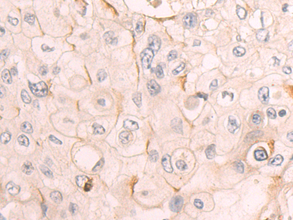 The image is immunohistochemistry of paraffin-embedded Human esophagus cancer tissue using P03777(ICOSLG Antibody) at dilution 1/50. (Original magnification: ×200) |
