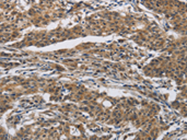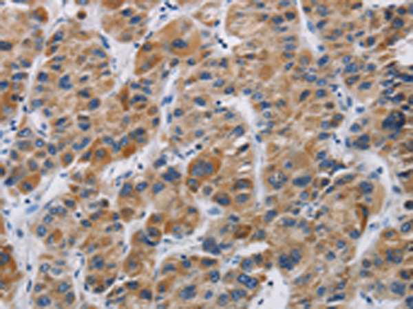 The image is immunohistochemistry of paraffin-embedded Human liver cancer tissue using P04955(IFNGR2 Antibody) at dilution 1/40. (Original magnification: ×200) |