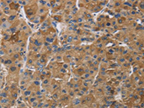 The image is immunohistochemistry of paraffin-embedded Human liver cancer tissue using P04956(IGF2R Antibody) at dilution 1/50. (Original magnification: ×200) |