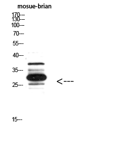 Western blot analysis of IGFBP3 in mosue brian lysates using IGFBP3 antibody. |