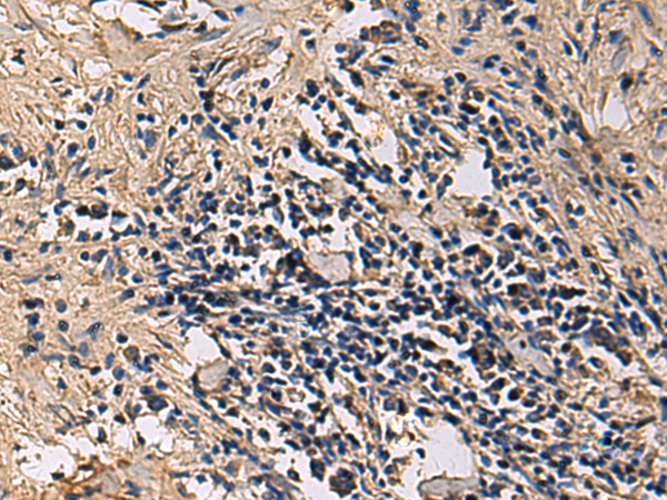 The image is immunohistochemistry of paraffin-embedded Human breast cancer using P06820(IGHG1 Antibody) at dilution 1/60. (Original magnification: ×200) |