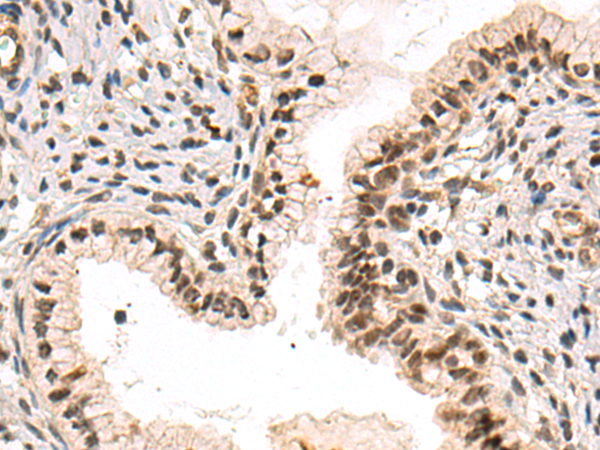 The image is immunohistochemistry of paraffin-embedded Human cervical cancer tissue using P05569(IKZF4 Antibody) at dilution 1/35. (Original magnification: ×200) |