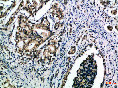 Immunohistochemistry analysis of paraffin-embedded Human breastcancer using IL-15 antibody.High-pressure and temperature Sodium Citrate pH 6.0 was used for antigen retrieval. |