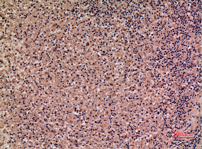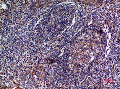Immunohistochemistry analysis of paraffin-embedded Human spleen using IL-28 antibody.High-pressure and temperature Sodium Citrate pH 6.0 was used for antigen retrieval. |