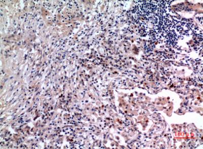 Immunohistochemistry analysis of paraffin-embedded Human lung using IL-6 antibody.High-pressure and temperature Sodium Citrate pH 6.0 was used for antigen retrieval. |