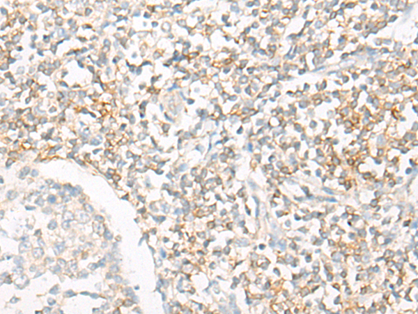 The image is immunohistochemistry of paraffin-embedded Human tonsil tissue using P13210(IL16 Antibody) at dilution 1/20. (Original magnification: ×200) |