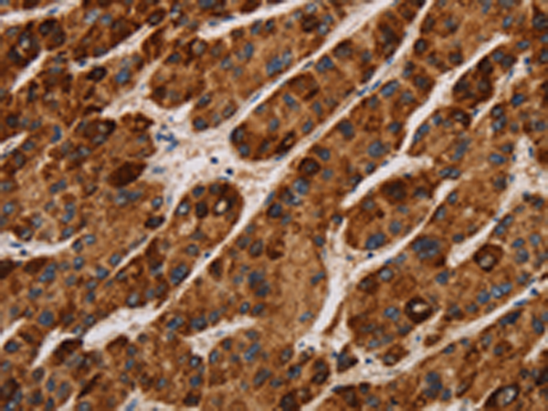The image is immunohistochemistry of paraffin-embedded Human liver cancer tissue using P11847(IL17RA Antibody) at dilution 1/40. (Original magnification: ×200) |