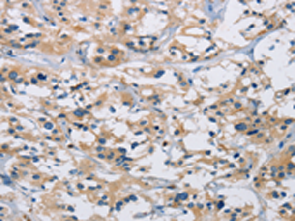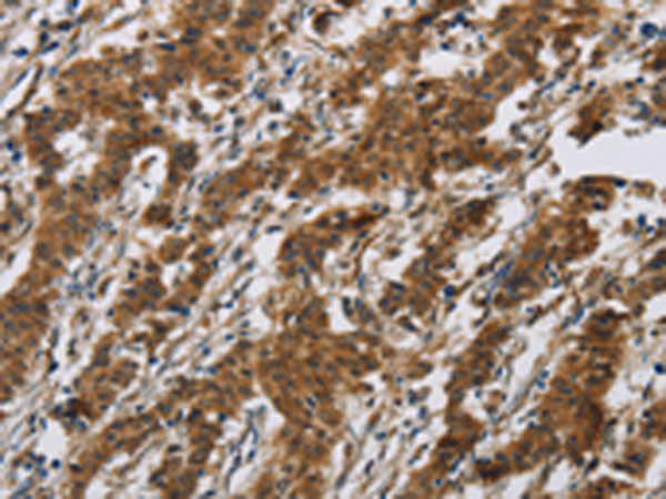 The image is immunohistochemistry of paraffin-embedded Human gasrtic cancer tissue using P11848(IL17RB Antibody) at dilution 1/40. (Original magnification: ×200) |