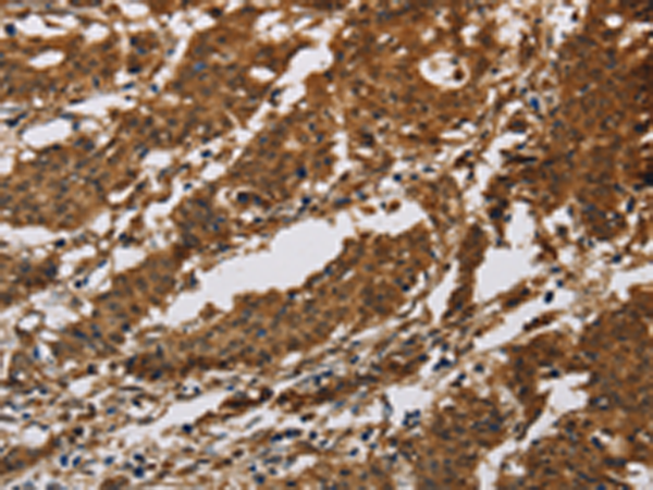 The image is immunohistochemistry of paraffin-embedded Human gastric cancer tissue using P04961(IL17RB Antibody) at dilution 1/40. (Original magnification: ×200) |