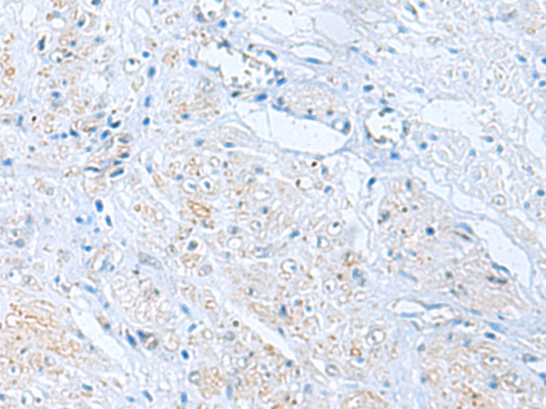 The image is immunohistochemistry of paraffin-embedded Human prostate cancer tissue using P07051(IL18BP Antibody) at dilution 1/65. (Original magnification: ×200) |