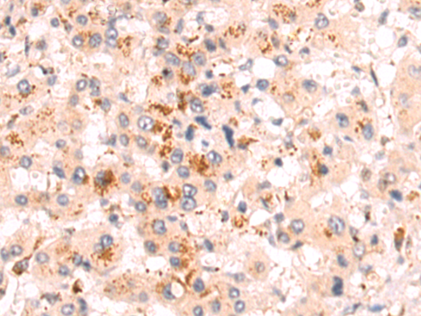 The image is immunohistochemistry of paraffin-embedded Human liver cancer tissue using P05638(IL18RAP Antibody) at dilution 1/50. (Original magnification: ×200) |