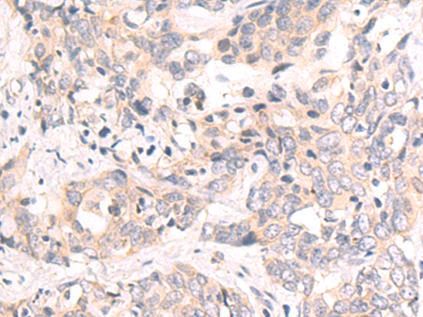 The image is immunohistochemistry of paraffin-embedded Human cervical cancer tissue using P05638(IL18RAP Antibody) at dilution 1/50. (Original magnification: ×200) |