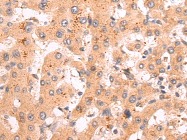 The image is immunohistochemistry of paraffin-embedded Human liver cancer tissue using P12509(IL18RAP Antibody) at dilution 1/50. (Original magnification: ×200) |