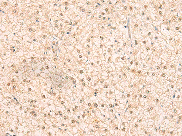 The image is immunohistochemistry of paraffin-embedded Human liver cancer tissue using P13612(IL1RAPL2 Antibody) at dilution 1/20. (Original magnification: ×200) |