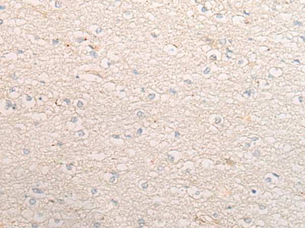 The image is immunohistochemistry of paraffin-embedded Human brain tissue using P13253(IL20RB Antibody) at dilution 1/20. (Original magnification: ×200) |