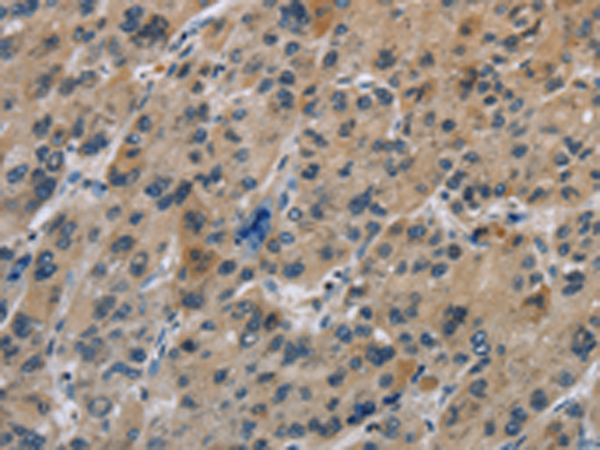 The image is immunohistochemistry of paraffin-embedded Human liver cancer tissue using P11850(IL31 Antibody) at dilution 1/20. (Original magnification: ×200) |