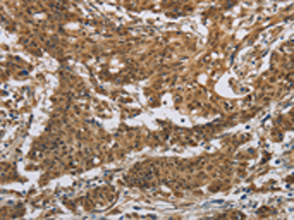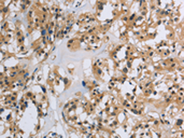 The image is immunohistochemistry of paraffin-embedded Human gastric cancer tissue using P04964(IL5RA Antibody) at dilution 1/40. (Original magnification: ×200) |