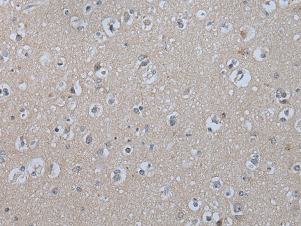 The image is immunohistochemistry of paraffin-embedded Human brain tissue using P12757(IL9R Antibody) at dilution 1/25. (Original magnification: ×200) |