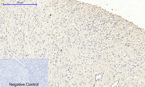 Immunohistochemistry analysis of paraffin-embedded Human uterus cancer using iNOS antibody. High-pressure and temperature Sodium Citrate pH 6.0 was used for antigen retrieval.Negative control was used by secondary antibody only. |
