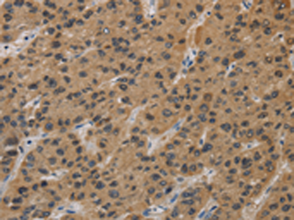The image is immunohistochemistry of paraffin-embedded Human liver cancer tissue using P11859(INPPL1 Antibody) at dilution 1/40. (Original magnification: ×200) |