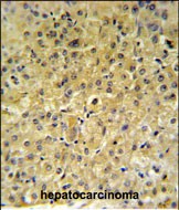 INSC Antibody (Center) (Cat. #P30531) IHC analysis in formalin fixed and paraffin embedded hepatocarcinoma followed by peroxidase conjugation of the secondary antibody and DAB staining. This data demonstrates the use of the INSC Antibody (Center) for immunohistochemistry. Clinical relevance has not been evaluated. |