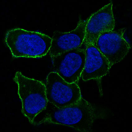 Immunofluorescence analysis of Integrin alpha 5 in MCF-7 using Integrin alpha 5 antibody. |