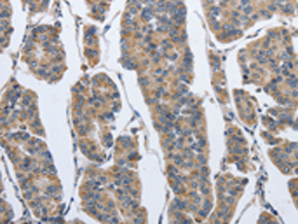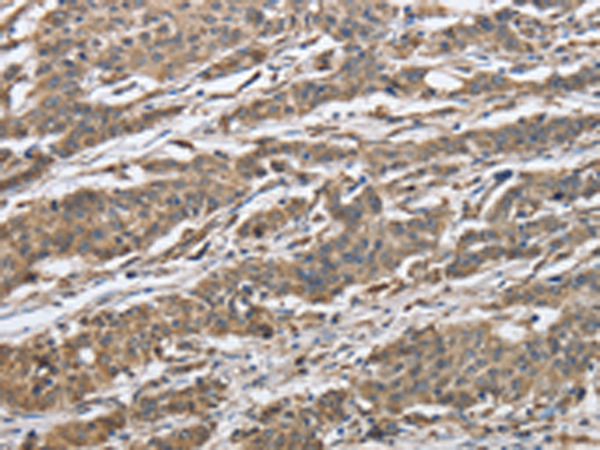 The image is immunohistochemistry of paraffin-embedded Human gasrtic cancer tissue using P04971(IPO7 Antibody) at dilution 1/40. (Original magnification: ×200) |